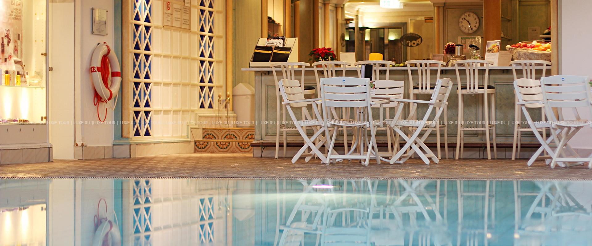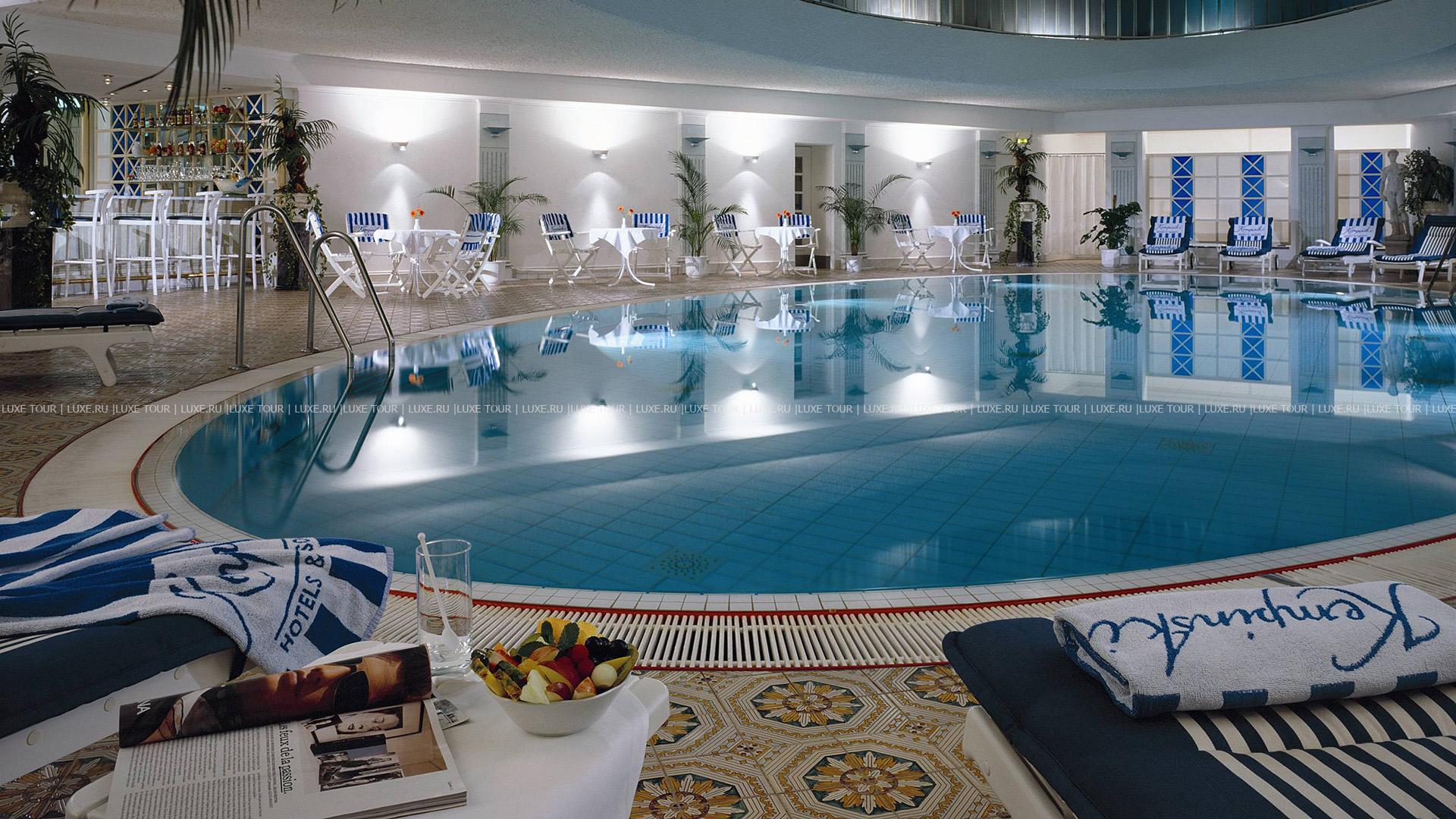 Крытый бассейн с подогревом длиной 18 м и глубиной 1,6 м.