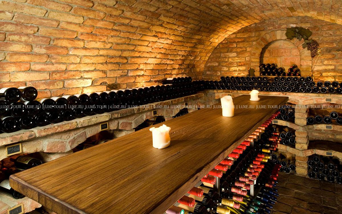 • Под каменными сводами винного погреба хранится великолепная коллекция вин — более, чем 6000 бутылок.