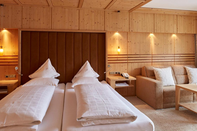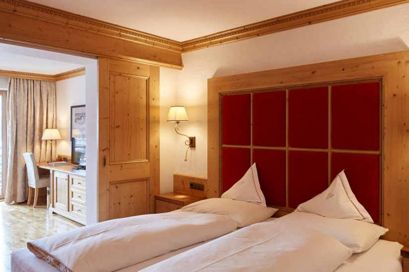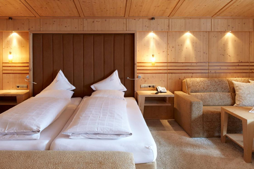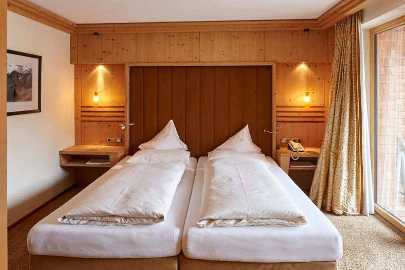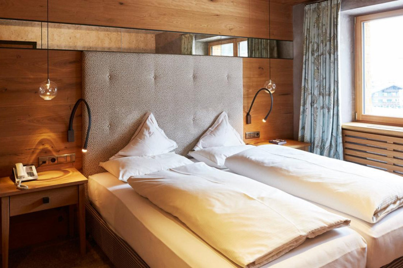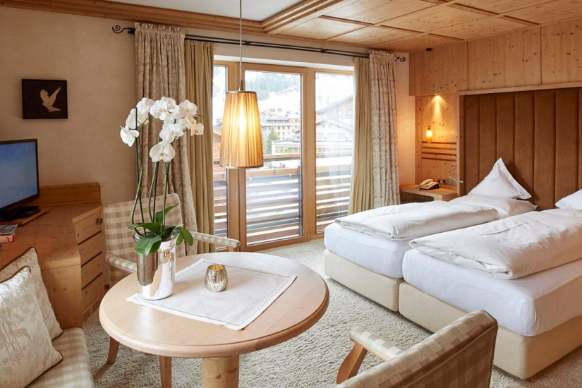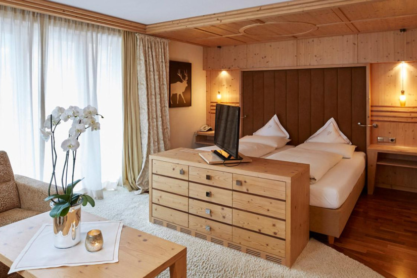 - Отель располагает комфортабельными номерами различных категорий, включая Guest Room, Suite и Apartment. Все номера имеют элегантные уютные интерьеры, выполненные в альпийском стиле, с отделкой из светлого натурального дерева и изысканных тканей, большими, от пола до потолка окнами и балконами с изумительным видом на альпийские склоны. Апартаменты находятся в отдельном корпусе, расположенном в 20 м от основного здания отеля.