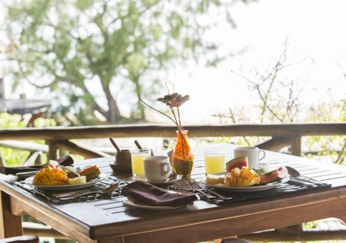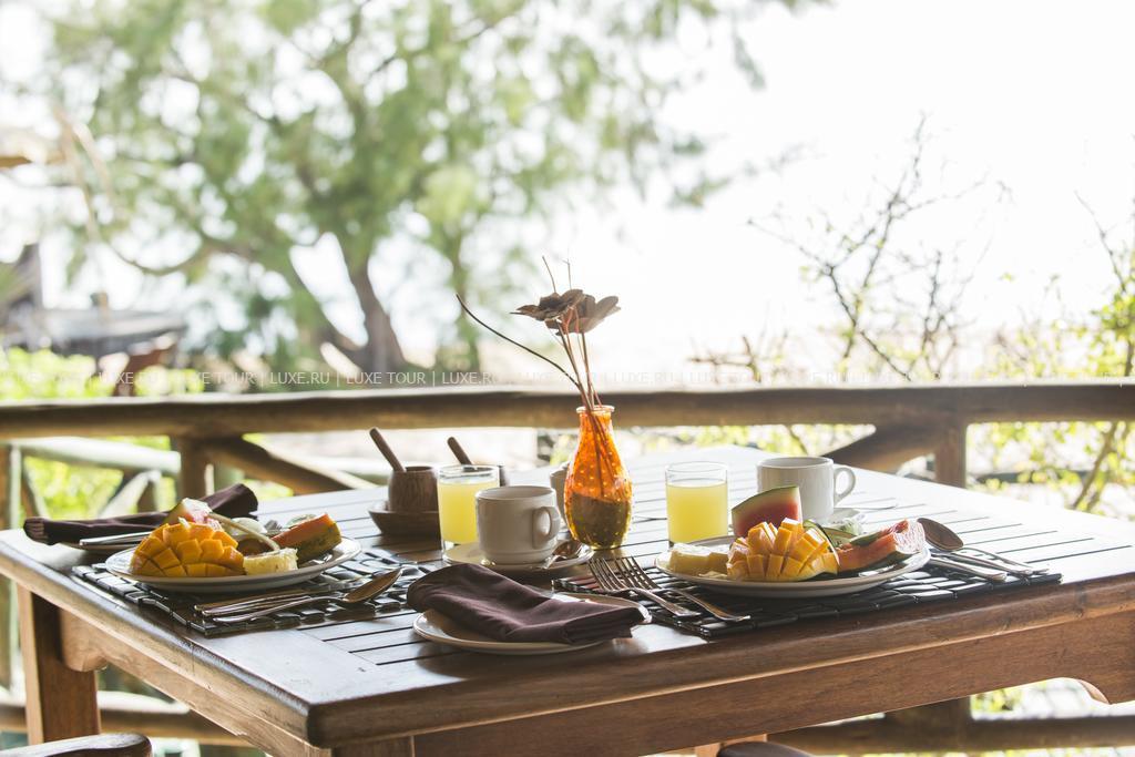 Просторный ресторан и бар также подняты на сваях, оригинально оформлены плетеной мебелью и перегородками, имеют вид на океан. Здесь подают блюда местной кухни, из даров моря и предлагают обширную карту вин.