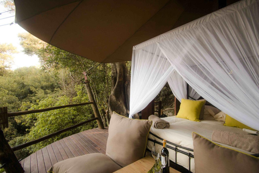 - В отеле 8 просторных и комфортабельных домиков-тентов, которые размещены на берегу озера. Тенты имеют большие окна, выходящие на три стороны, просторную прихожую и располагаются на подиумах в своеобразных беседках из местных природных материалов, которые служат одновременно и верандой-террасой. Интерьеры оформлены в светлых тонах.
