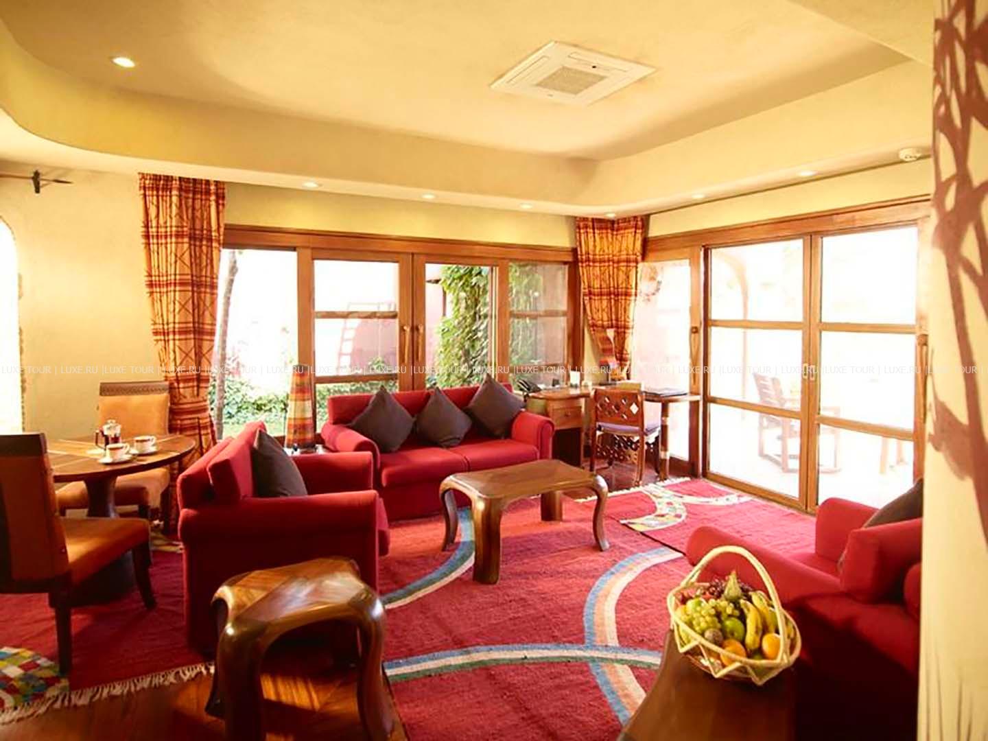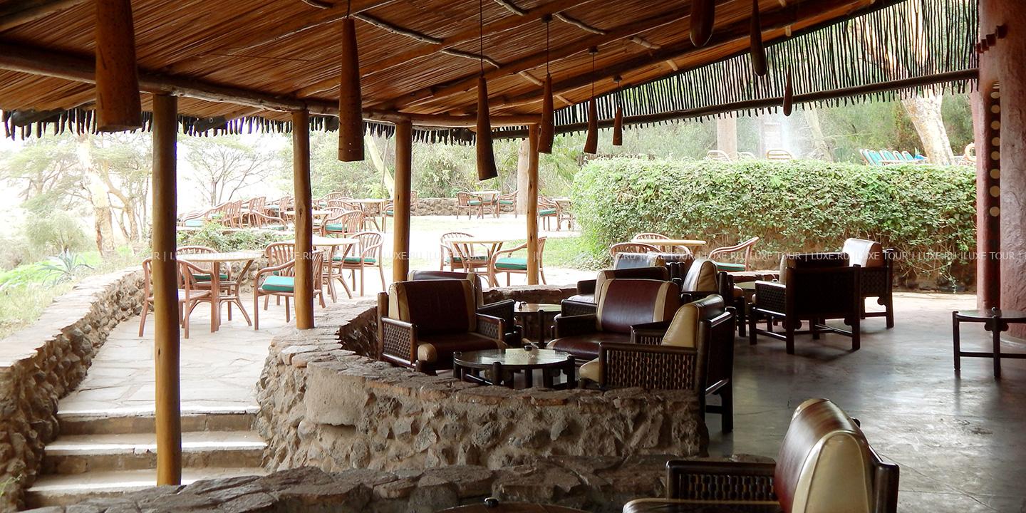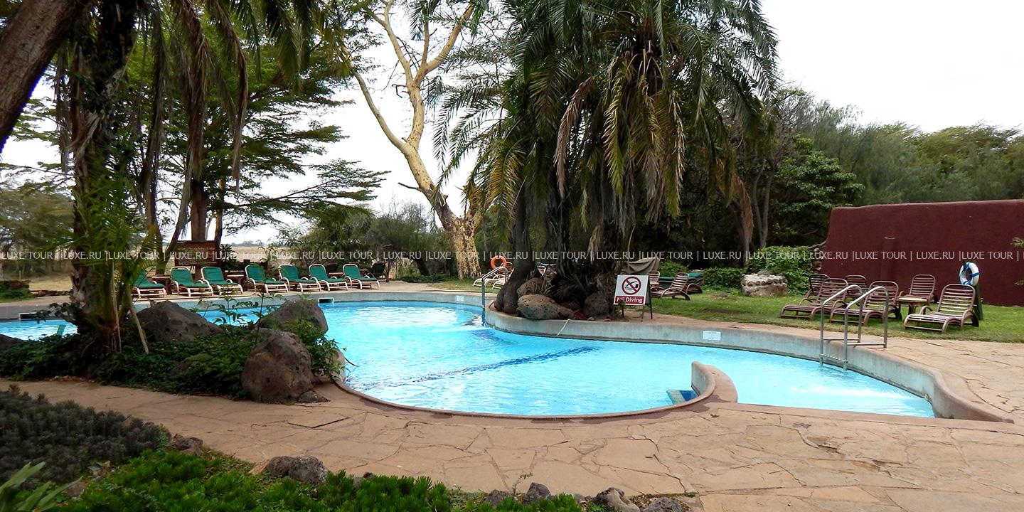 Бассейн отеля окружен акациевыми деревьями и питается водой реки, берущей начало в ледниках на вершине Килиманджаро.
