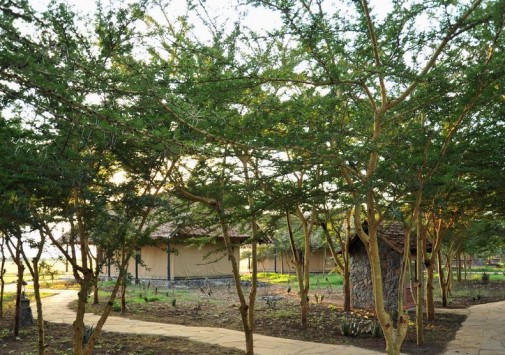 Отель Sweetwaters Tented Camp – комплекс комфортабельных брезентовых шатров-тентов в колониальном стиле. Он расположен на лужайке в окружении густого тропического леса. Шатры стоят на деревянных помостах и покрыты makuti – традиционной кенийской крышей из листьев пальмы.
