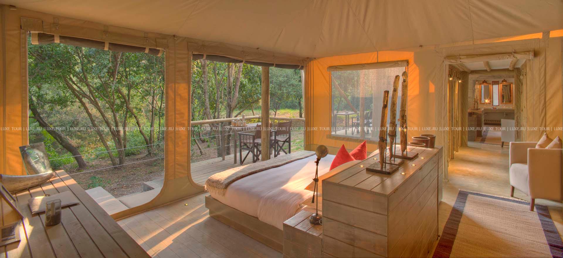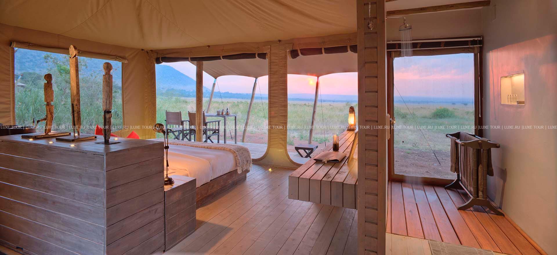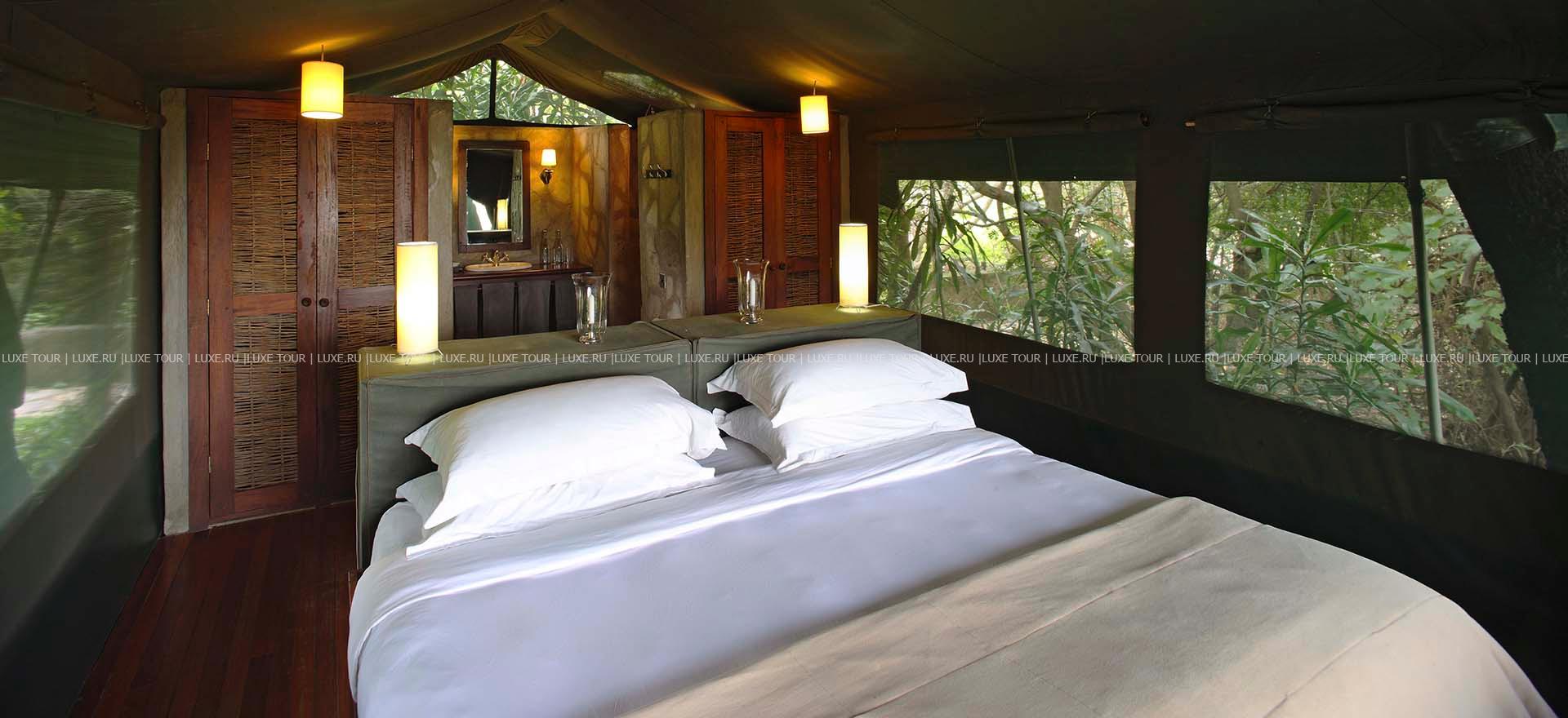 Отель расположен возле реки Сабаринго, окружен лесами и представляет собой комплекс просторных комфортабельных шатров, перенося гостей в романтические времена Эрнеста Хемингуэя.