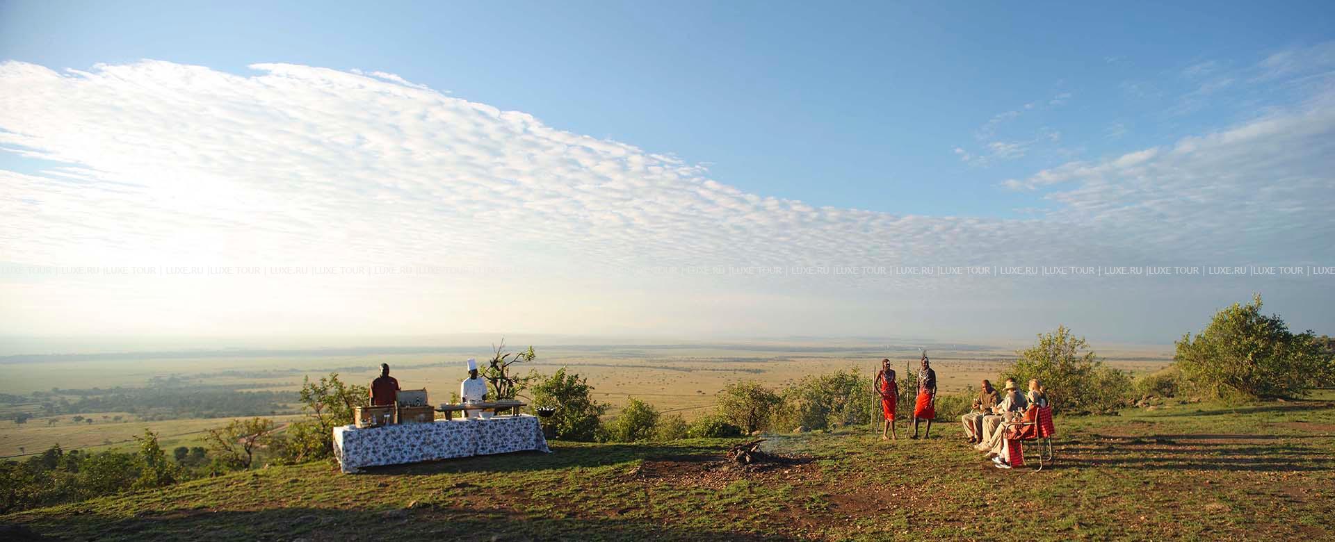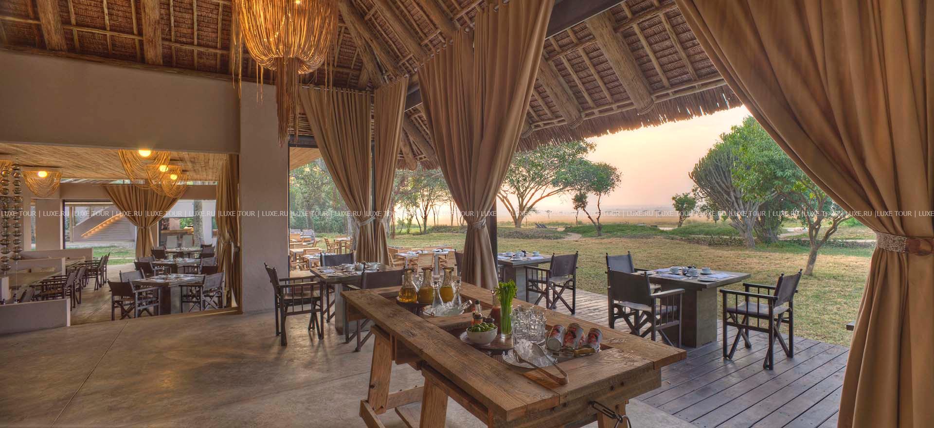 • Завтраки и обеды могут сервироваться под открытым небом, на очищенной от леса площадке, что позволяет гостям в полной мере ощутить экзотику африканской степи-буш.