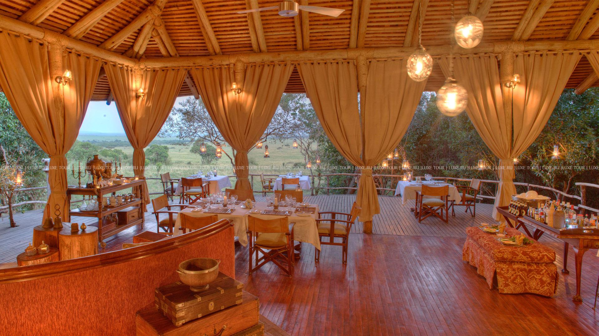 Ресторан отеля имеет открытую веранду и прекрасный вид на заповедник Масаи Мара. Предлагаются традиционные блюда африканской кухни. Время от времени завтраки и ужины сервируются под открытым небом, на очищенной от леса площадке, что позволяет гостям в полной мере ощутить экзотику африканского буша. К услугам посетителей уютный бар с камином.
