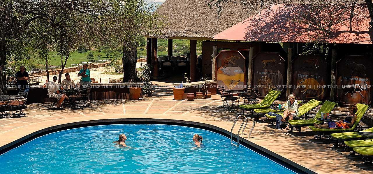 Большой открытый бассейн. Национальный парк Тарангире известен большими стадами слонов: в парке насчитывается около 2500 особей этих животных. Стадо в 200 слонов постоянно располагается в непосредственной близости к отелю, возможно наблюдение за ним прямо с веранды домика или тента. Здесь обитают 94 вида млекопитающих и более чем 500 видов птиц. Предлагаются различные виды сафари.