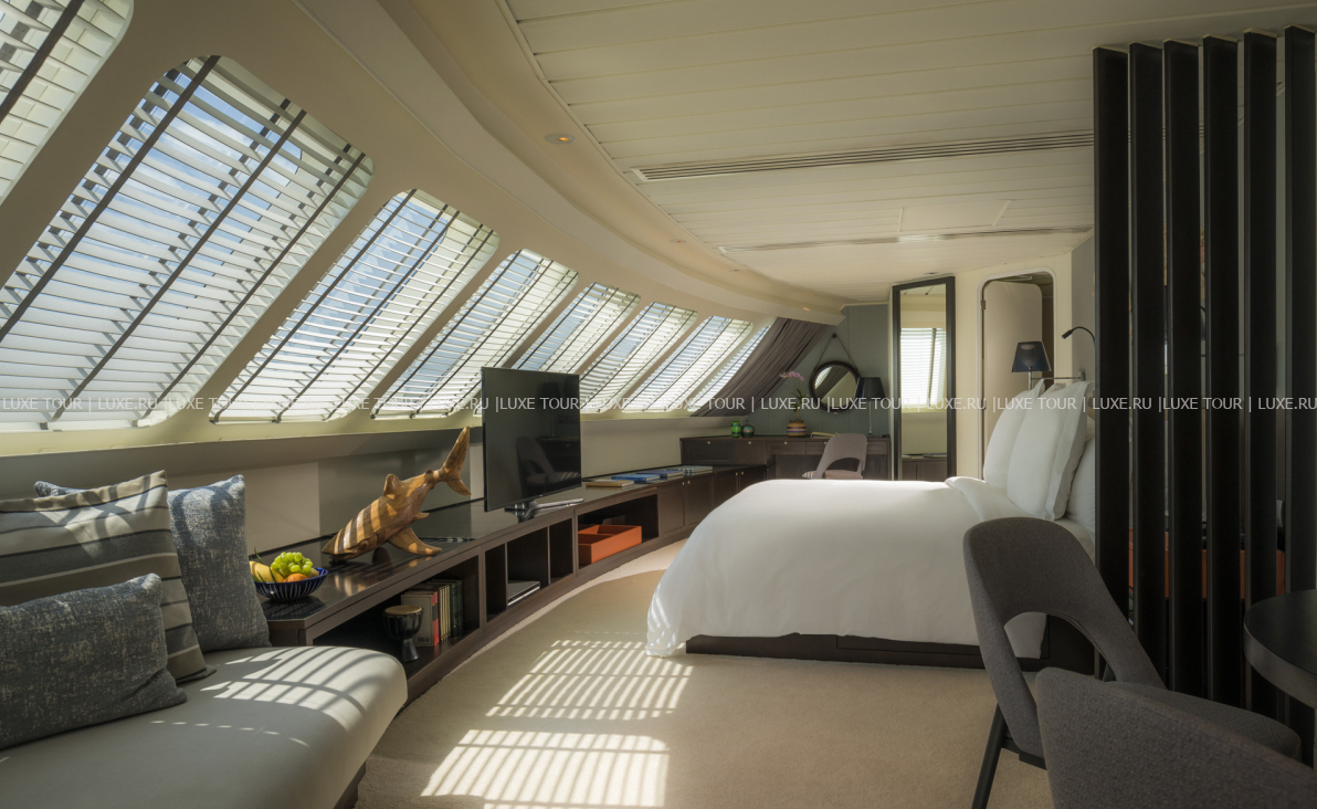 Для гостей – библиотека CD/DVD дисков, гостиная, телескоп, услуги прачечной и химчистки.