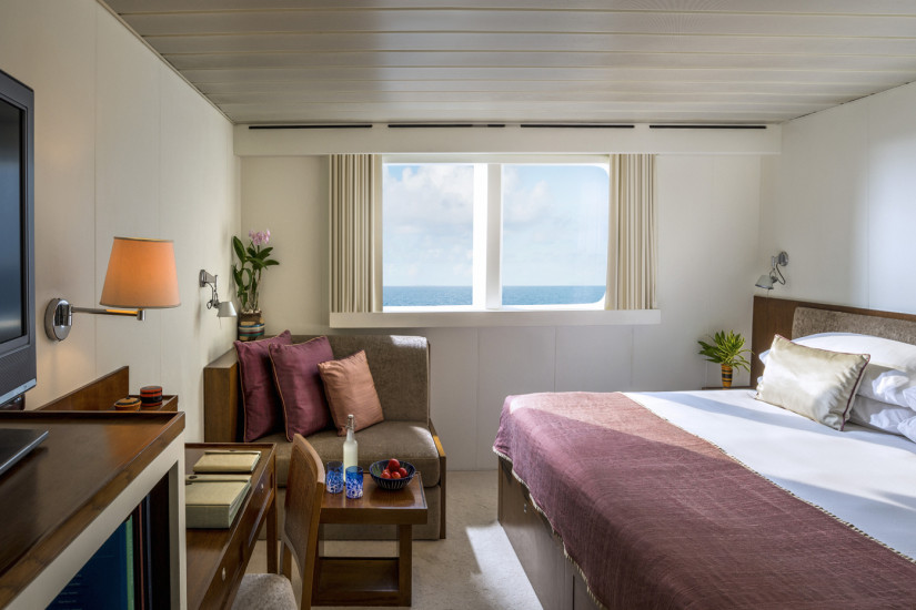 - На катамаране находится 11 кают различных категорий, включая 10 State Rooms и Explorer Suite. В каютах — элегантные современные интерьеры в пастельных тонах, с ковровым покрытием на полу, удобной мебелью из тикового дерева, изысканными элементами декора.