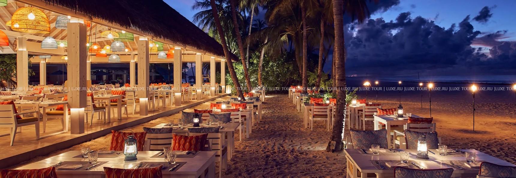 - При выборе ужина в ресторанах Aragu, Tavaru или Faiy, либо при участии в тематических ужинах, предоставляется кредит: 150$ на взрослого (от 14 лет) и 75$ на ребёнка (от 4 до 13 лет) за ночь.