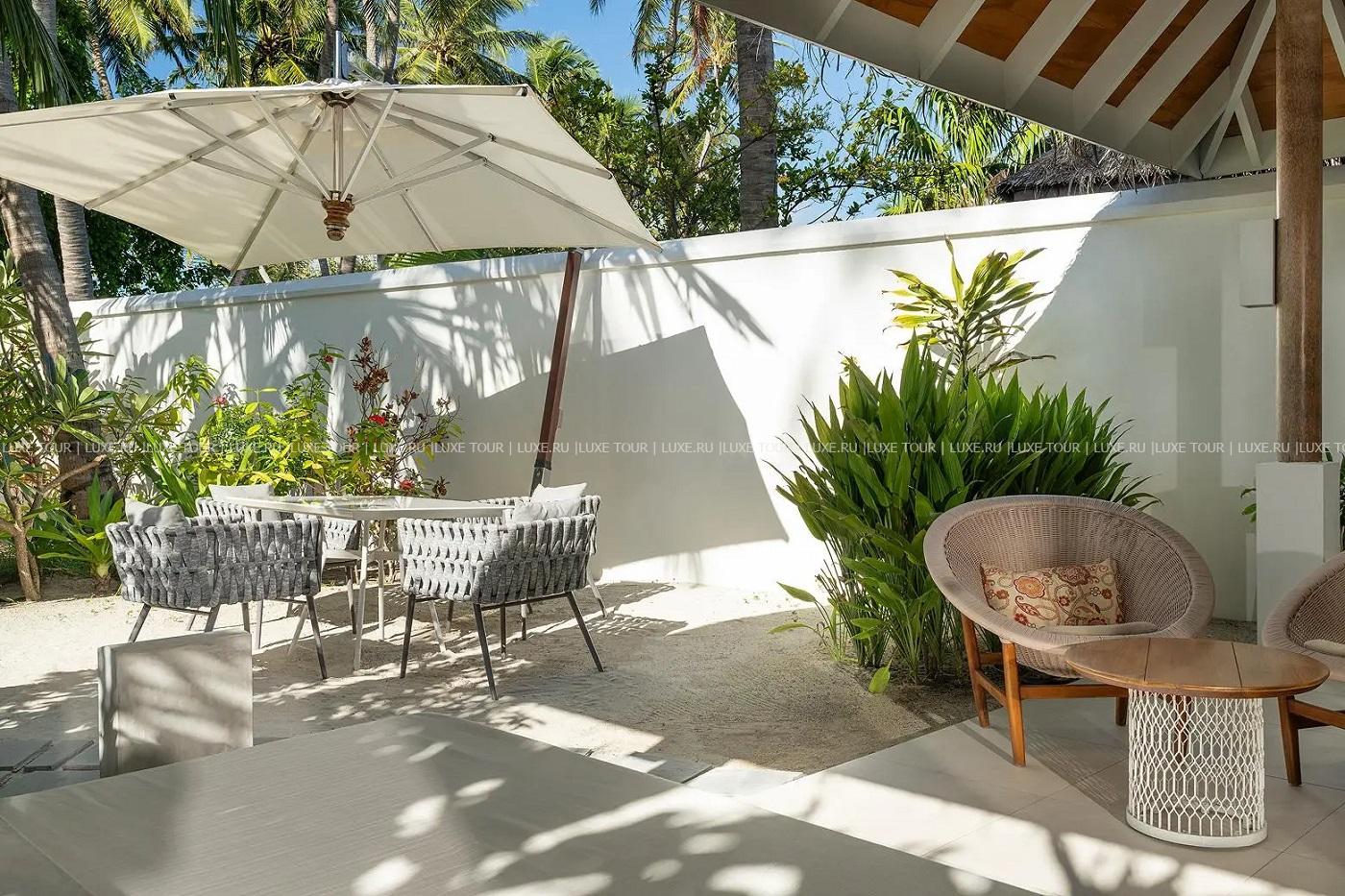 - действует при проживании в Beach Villa with Pool, Water Bungalow with Pool, Water Villa